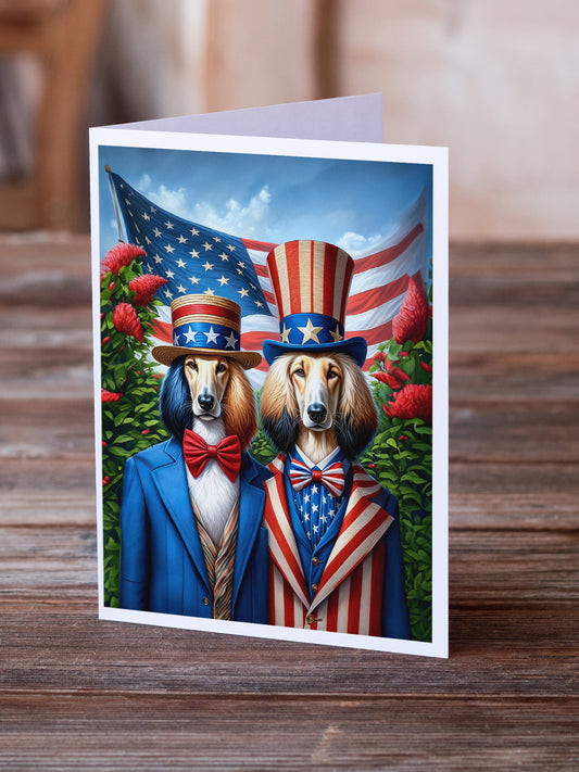 Afghan Hound Patriotic American Greeting Cards Pack of 8