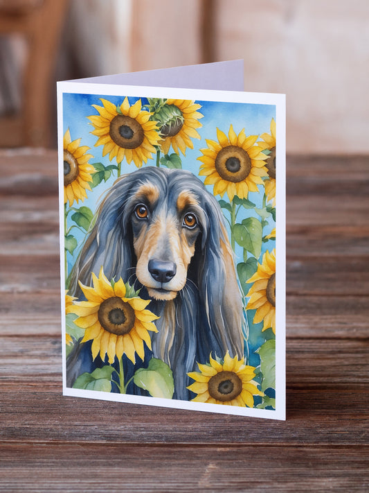 Afghan Hound in Sunflowers Greeting Cards Pack of 8