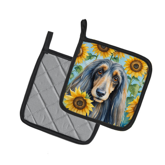 Afghan Hound in Sunflowers Pair of Pot Holders