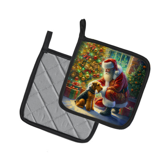 Airedale Terrier and Santa Claus Pair of Pot Holders