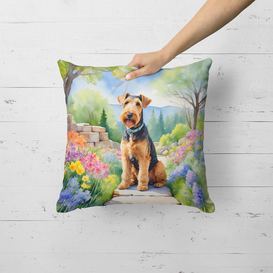 Airedale Terrier Spring Garden Throw Pillow