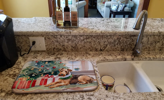 Airedale Terrier Cozy Christmas Dish Drying Mat
