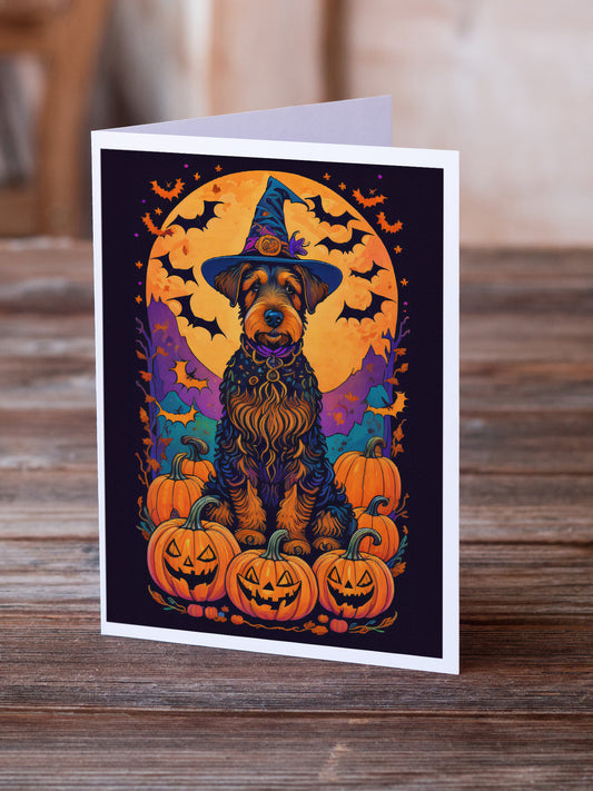 Airedale Terrier Witchy Halloween Greeting Cards and Envelopes Pack of 8