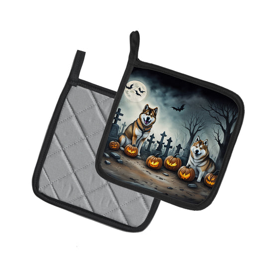 Akita Spooky Halloween Pair of Pot Holders