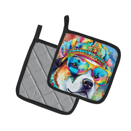Akita Hippie Dawg Pair of Pot Holders
