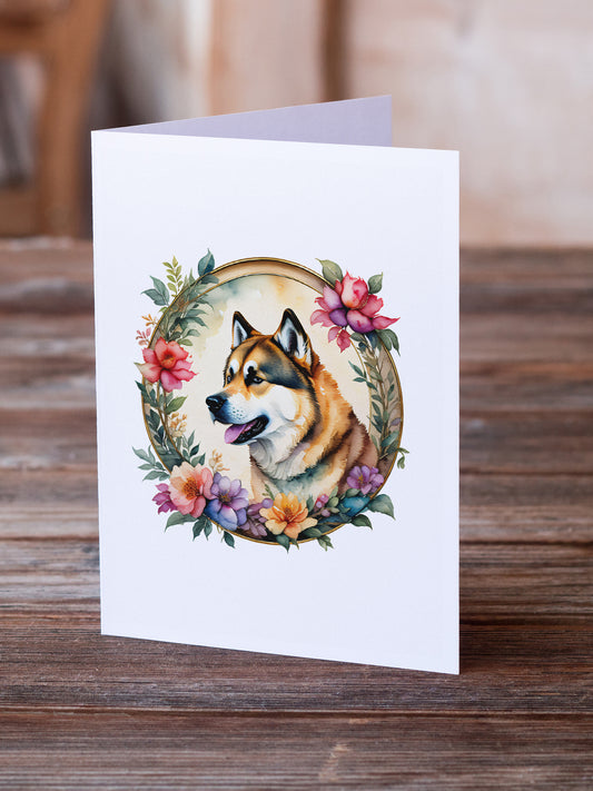 Akita and Flowers Greeting Cards and Envelopes Pack of 8