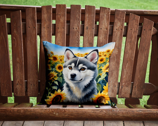 Alaskan Klee Kai in Sunflowers Throw Pillow