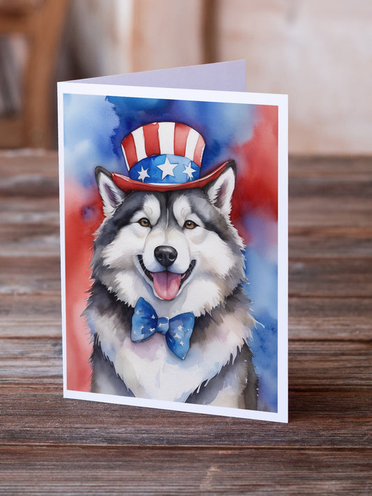 Alaskan Malamute Patriotic American Greeting Cards Pack of 8