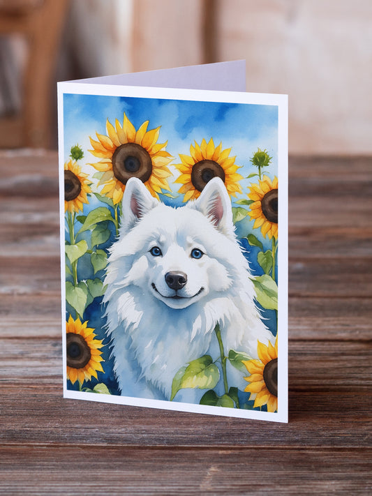 American Eskimo in Sunflowers Greeting Cards Pack of 8