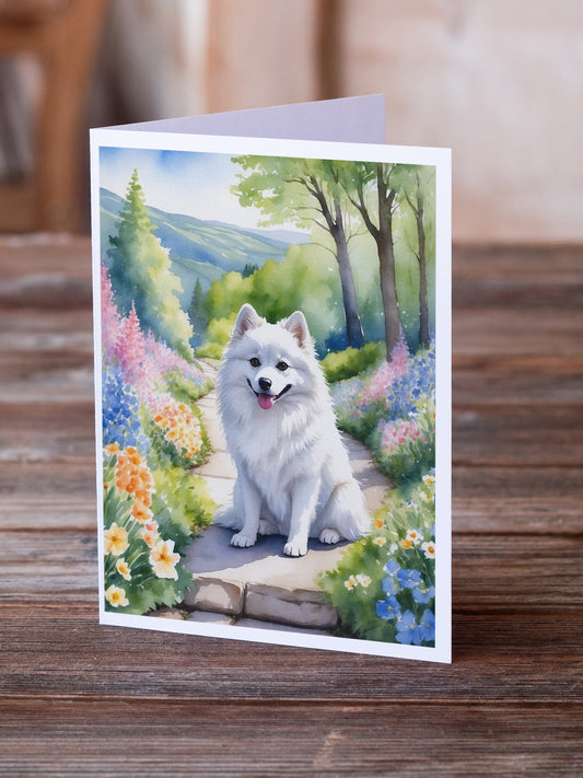American Eskimo Spring Garden Greeting Cards Pack of 8