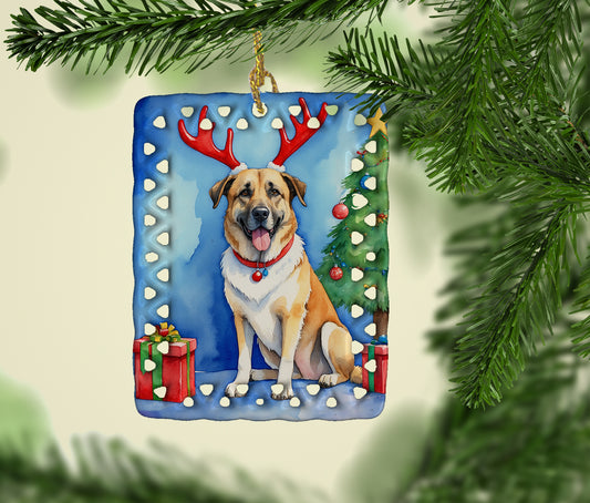 Anatolian Shepherd Dog Christmas Reindeer Porcelain Ornament