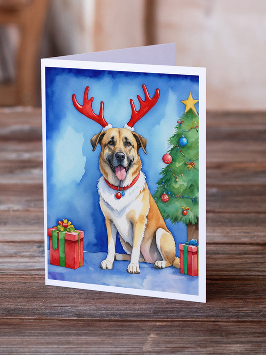 Anatolian Shepherd Dog Christmas Reindeer Greeting Cards Pack of 8
