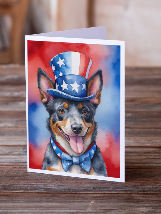 Australian Cattle Dog Patriotic American Greeting Cards Pack of 8