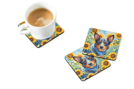 Australian Cattle Dog in Sunflowers Foam Coasters