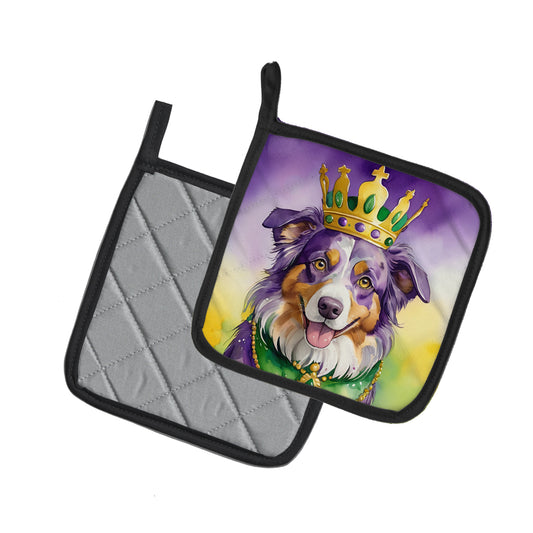 Australian Shepherd King of Mardi Gras Pair of Pot Holders