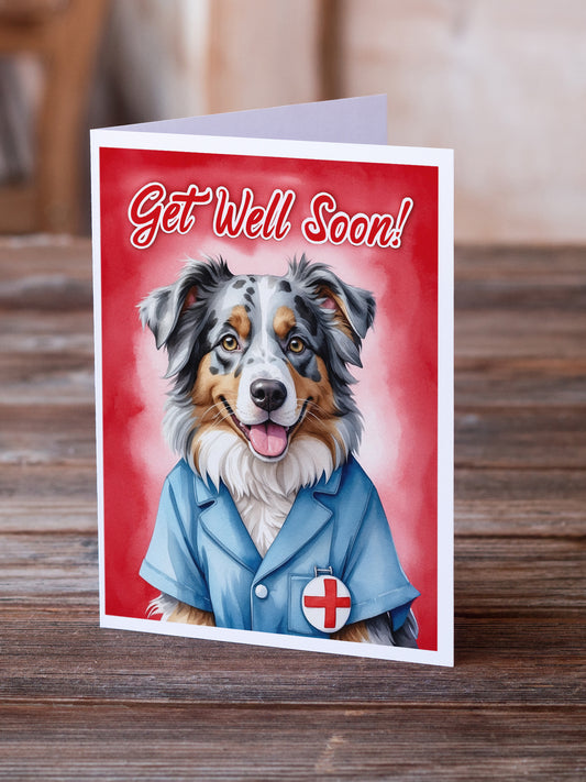 Australian Shepherd Get Well Soon Greeting Cards Pack of 8