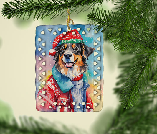 Australian Shepherd Holiday Christmas Porcelain Ornament