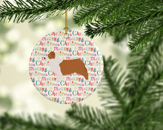 Australian Shepherd Dog Merry Christmas Ceramic Ornament