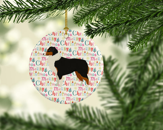 Australian Shepherd Merry Christmas Ceramic Ornament