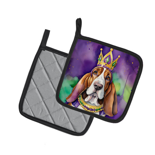 Basset Hound King of Mardi Gras Pair of Pot Holders