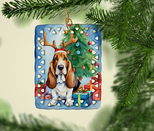 Basset Hound Christmas Reindeer Porcelain Ornament