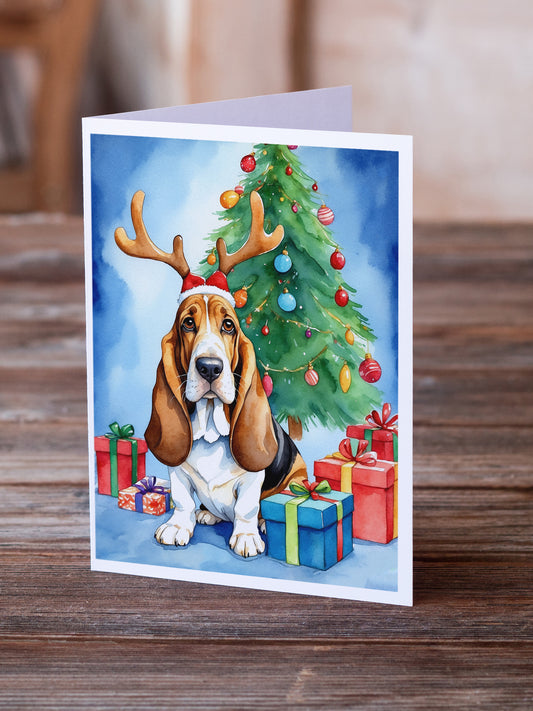 Basset Hound Christmas Reindeer Greeting Cards Pack of 8