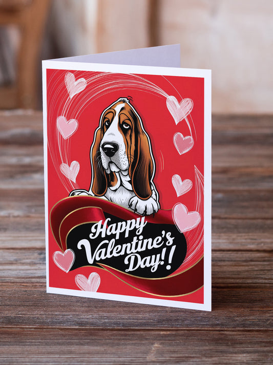 Basset Hound Happy Valentine's Day Greeting Cards Pack of 8