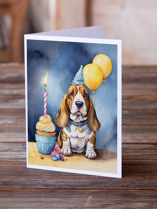 Basset Hound Happy Birthday Greeting Cards Pack of 8