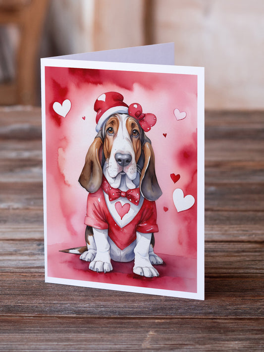 Basset Hound My Valentine Greeting Cards Pack of 8
