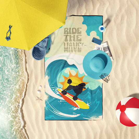 Surfer Dog Standard Black Poodle Premium Beach Towel