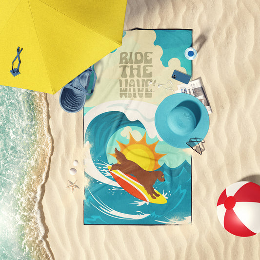 Surfer Dog Mahogany Golden Retriever Premium Beach Towel