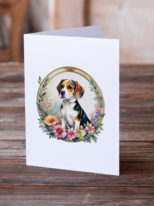 Beagle and Flowers Greeting Cards and Envelopes Pack of 8