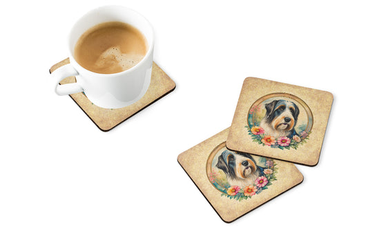 Bearded Collie and Flowers Foam Coasters