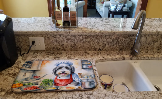 Bearded Collie Cozy Christmas Glass Cutting Board