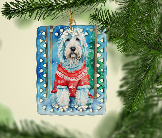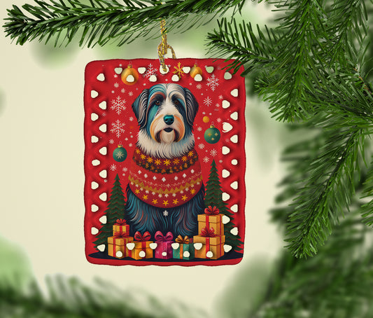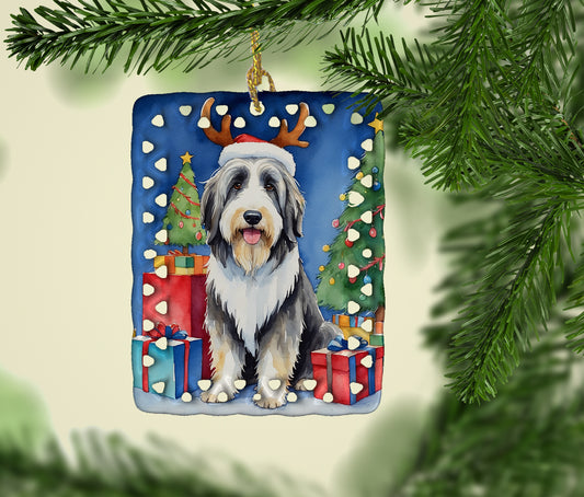 Bearded Collie Holiday Christmas Porcelain Ornament