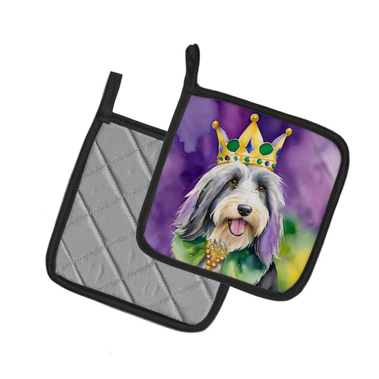 Bearded Collie King of Mardi Gras Pair of Pot Holders