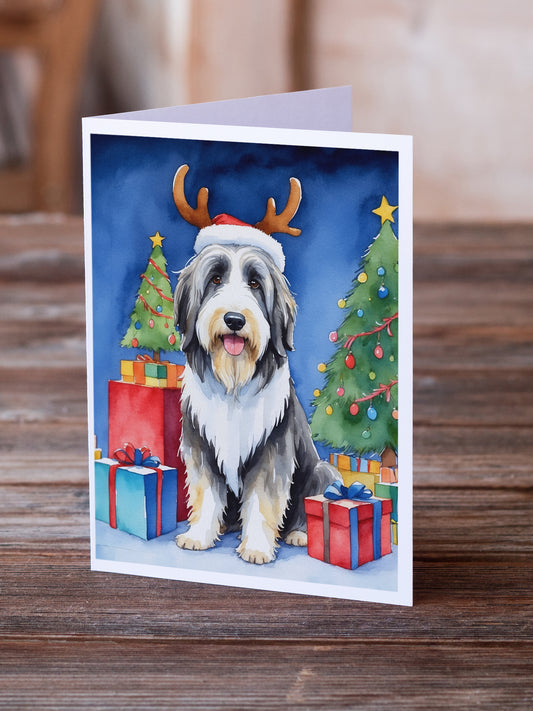 Bearded Collie Christmas Reindeer Greeting Cards Pack of 8