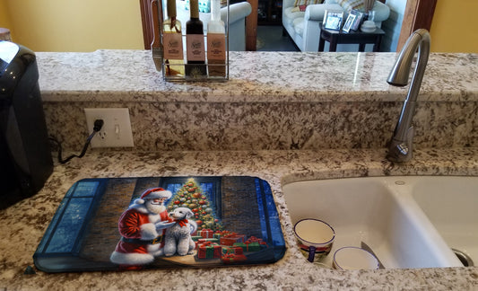 Bedlington Terrier and Santa Claus Dish Drying Mat