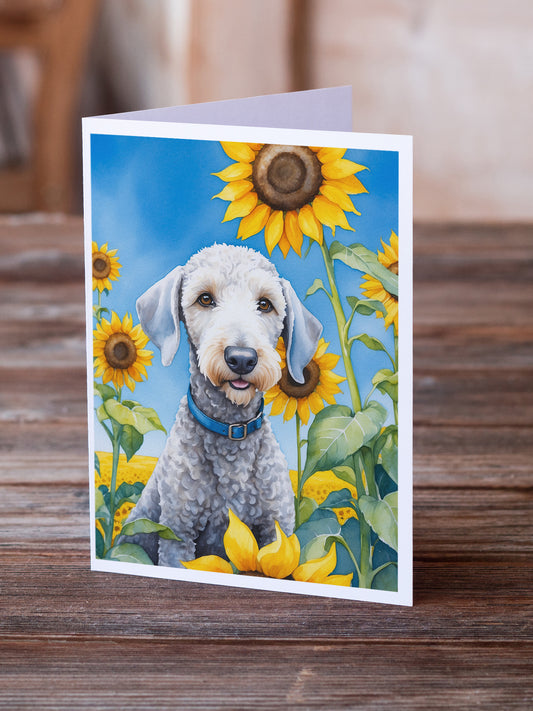 Bedlington Terrier in Sunflowers Greeting Cards Pack of 8