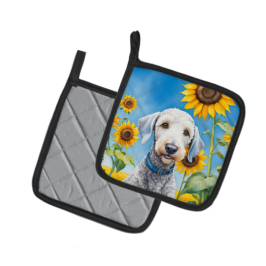 Bedlington Terrier in Sunflowers Pair of Pot Holders