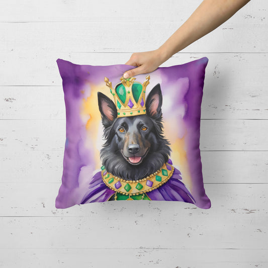 Belgian Sheepdog King of Mardi Gras Throw Pillow