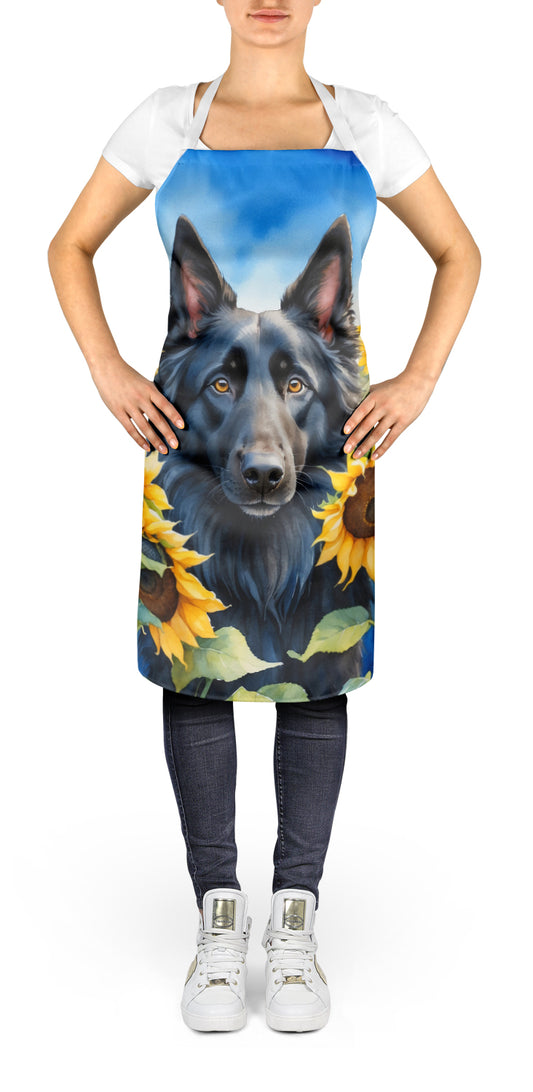 Belgian Sheepdog in Sunflowers Apron