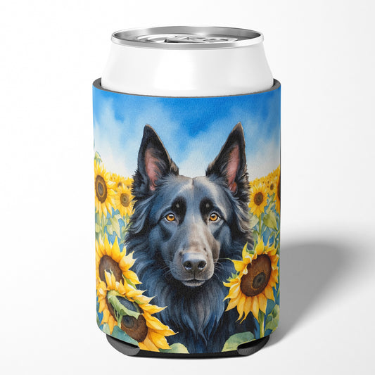 Belgian Sheepdog in Sunflowers Can or Bottle Hugger
