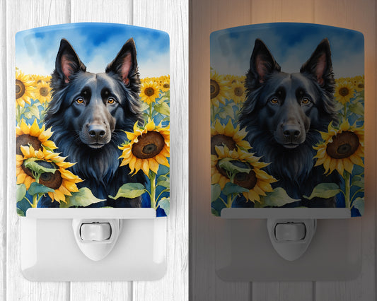 Belgian Sheepdog in Sunflowers Ceramic Night Light