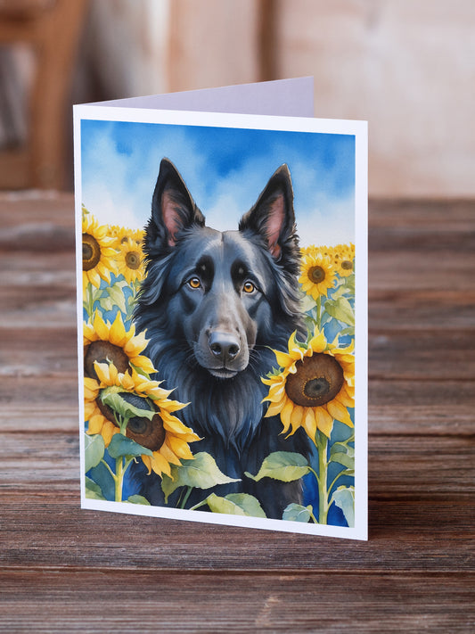 Belgian Sheepdog in Sunflowers Greeting Cards Pack of 8