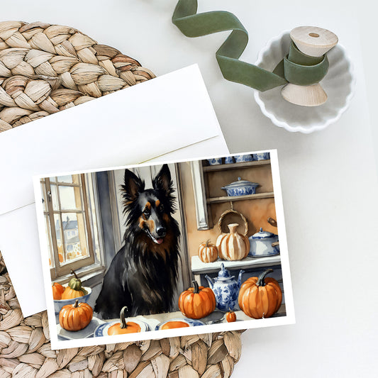 Belgian Sheepdog Fall Kitchen Pumpkins Greeting Cards and Envelopes Pack of 8