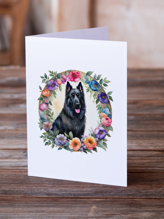 Belgian Sheepdog and Flowers Greeting Cards and Envelopes Pack of 8