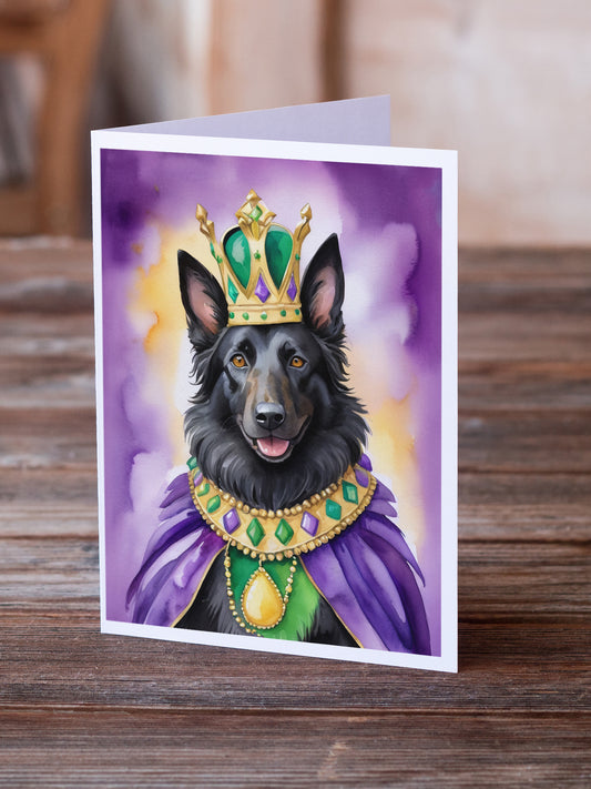 Belgian Sheepdog King of Mardi Gras Greeting Cards Pack of 8