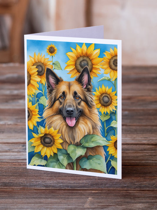 Belgian Tervuren in Sunflowers Greeting Cards Pack of 8