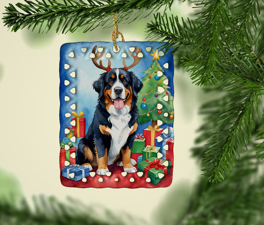 Bernese Mountain Dog Christmas Reindeer Porcelain Ornament
